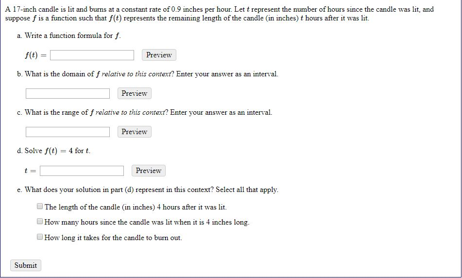 Solved A 17 Inch Candle Is Lit And Burns At A Constant Rate Chegg Com